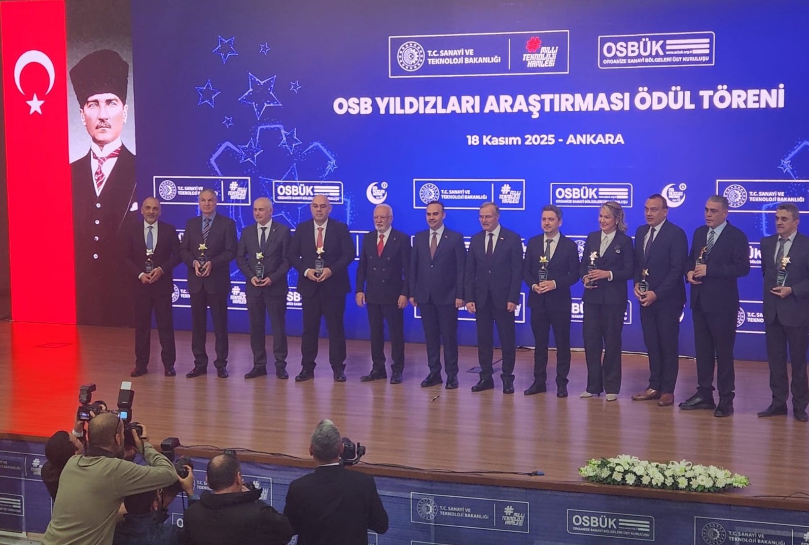 Bölgemizin önde gelen üreticilerinden Hyundai Motor Türkiye Otomotiv A.Ş., OSBÜK tarafından düzenlenen 2025 OSB Yıldızları Araştırması sonuçlarına göre üç farklı kategoride ödül alarak önemli bir başarı elde etti.